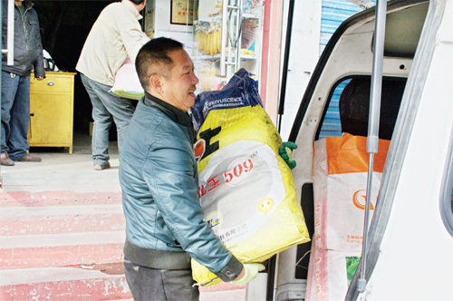 2月13日,原平市宇峰種業(yè)工作人員正在為種子銷售點(diǎn)運(yùn)送各種優(yōu)良種子。目前該市農(nóng)資部門(mén)已經(jīng)為農(nóng)民們準(zhǔn)備好了各種化肥、種子、農(nóng)機(jī)具等,為今年春耕備耕做好了準(zhǔn)備。(趙春曉 攝)