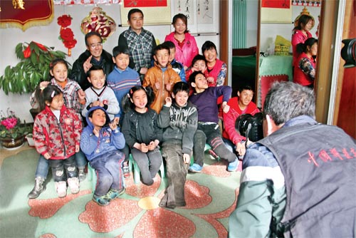 近日,原平市文明辦、市文聯(lián)組織攝影愛(ài)好者下基層開(kāi)展“迎春送祝?!被顒?dòng),對(duì)全市模范、身邊好人進(jìn)行了走訪慰問(wèn),并為他們拍攝了全家福照片。圖為攝影愛(ài)好者為2014年中國(guó)好人、山西省第四屆道德模范陳天文、郭改然夫婦免費(fèi)拍攝全家福照片。(褚震 攝)