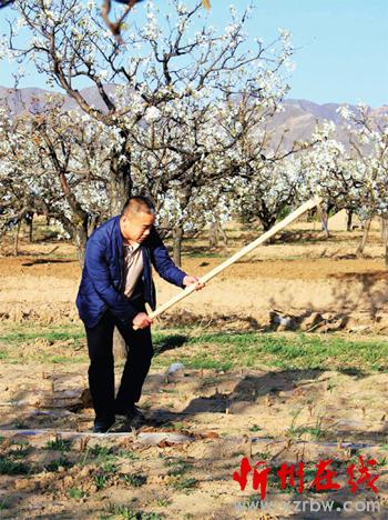 4 月16 日,游人在原平市萬(wàn)畝梨園中欣賞梨花綻放美景的同時(shí),從農(nóng)民手中“搶”過(guò)镢頭,幫助農(nóng)民刨地松土,體驗(yàn)勞作辛苦,分享勞動(dòng)之美。城鄉(xiāng)一體化建設(shè),新農(nóng)村景觀吸引了城市市民,節(jié)假日、周末城里人紛紛走出“水泥森林”,深入到農(nóng)村,不僅享受春光踏青賞花的樂(lè)趣,而且在鄉(xiāng)村游中,與廣大農(nóng)民一起勞動(dòng),同吃同住,體會(huì)農(nóng)耕文化之韻。(吉建平 攝)