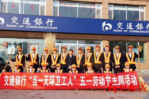 為表達(dá)對(duì)辛勤工作的勞動(dòng)者——城市環(huán)衛(wèi)工人的尊重和敬意,在五一國際勞動(dòng)節(jié)到來之際,交通銀行忻州分行營業(yè)部舉行了“ 當(dāng)一天環(huán)衛(wèi)工人”主題活動(dòng)。圖為活動(dòng)結(jié)束后的合影。(鄭玉蘭 攝)