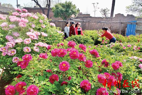 近年來(lái),原平市大力發(fā)展庭院經(jīng)濟(jì)、農(nóng)家樂(lè)觀光旅游業(yè),既美化了環(huán)境,又鼓了農(nóng)民錢(qián)袋子。圖為柳巷村農(nóng)家院里種植的牡丹競(jìng)相開(kāi)放,引得游人們爭(zhēng)相賞花拍照。(趙月仁 攝)