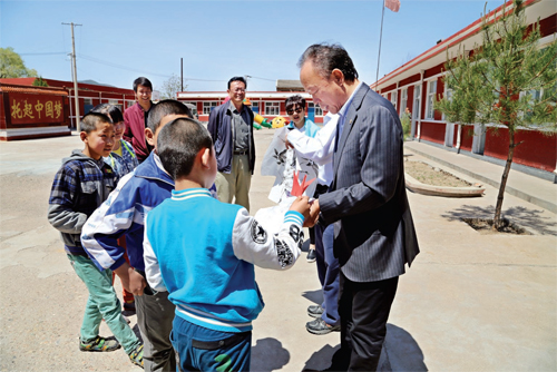 2006 年由省委組織部扶貧工作隊(duì)和省僑辦牽線搭橋,由海外華人創(chuàng)建的欣欣教育基金會(huì)向靜樂(lè)縣康家會(huì)小學(xué)捐贈(zèng)一萬(wàn)美元資助建設(shè)新校舍,新校舍于2006 年8 月份投入使用。5 月17 日,該基金會(huì)副會(huì)長(zhǎng)丁永慶一行深入靜樂(lè)縣,走訪基金會(huì)當(dāng)年捐建的康家會(huì)小學(xué)。圖為基金會(huì)工作人員在和學(xué)生交談,了解學(xué)校現(xiàn)在存在的問(wèn)題和困難,希望與該校保持長(zhǎng)期固定的聯(lián)系,以便進(jìn)一步的交流和幫助。(閆曉梅 攝)