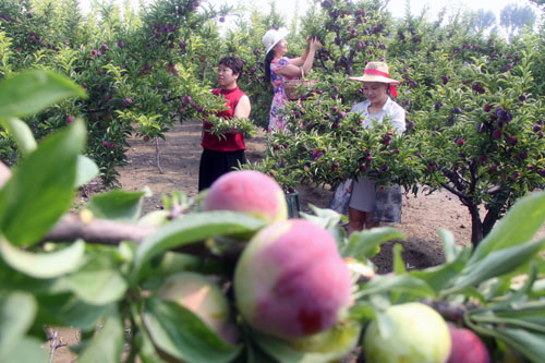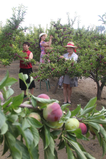7月24日,原平市新原鄉(xiāng)新華街村永豐農(nóng)家生態(tài)園里碩果累累,紅彤彤的李子掛滿(mǎn)枝頭,該市大力發(fā)展高效生態(tài)觀光旅游農(nóng)業(yè)種植業(yè),有效促進(jìn)農(nóng)業(yè)增產(chǎn)農(nóng)民增收,加快奔小康的步伐,實(shí)現(xiàn)致富夢(mèng),這是游人們正在這里拍照采摘購(gòu)買(mǎi)新鮮的李子。農(nóng)民們高興地說(shuō):“栽下?lián)u錢(qián)樹(shù),脫貧能致富?!保ㄚw月仁攝)