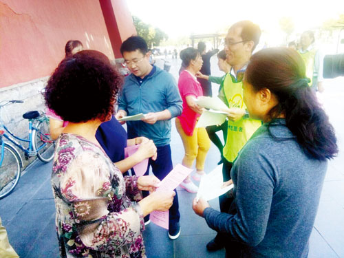 9月7日上午,共青團(tuán)忻州市委組織青年志愿者走上街頭,撿垃圾、清理小廣告、為市民發(fā)放創(chuàng)衛(wèi)宣傳資料,用自己的實(shí)際行動(dòng)倡導(dǎo)大家一起愛護(hù)環(huán)境,講究衛(wèi)生,養(yǎng)成良好的生活衛(wèi)生習(xí)慣,加入到我市創(chuàng)衛(wèi)的行列中來。圖為青年志愿者在古城廣場(chǎng)向過往市民發(fā)放創(chuàng)衛(wèi)宣傳資料。(張志遠(yuǎn) 攝)