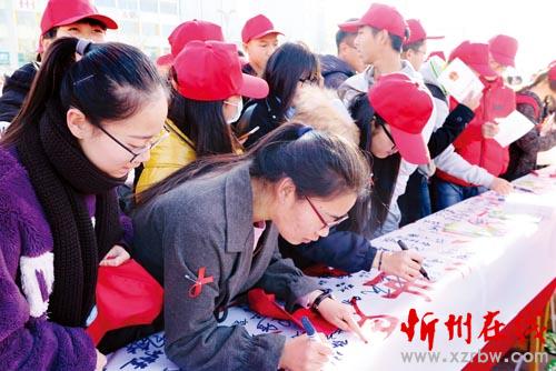12月1日,在第29個“世界艾滋病日”到來之際,我市在忻州體育廣場啟動了主題為“攜手抗艾,重在預(yù)防”的艾滋病防治宣傳活動。活動現(xiàn)場,來自市疾控中心、健康教育所等單位的工作人員以及忻州師院的志愿者們通過展板、宣傳欄、發(fā)放資料的形式向市民講解了艾滋病傳播途徑、艾滋病流行現(xiàn)狀與危害、如何預(yù)防艾滋病等方面的知識。工作人員現(xiàn)場為市民答疑解惑,呼吁廣大市民用科學(xué)、理性的態(tài)度正確認(rèn)識艾滋病,不歧視艾滋病病毒感染者。圖為志愿者在條幅上簽名(實(shí)習(xí)記者 王菲 王君 攝影報(bào)道) 相關(guān)鏈接: (責(zé)任編輯:李冬梅) |