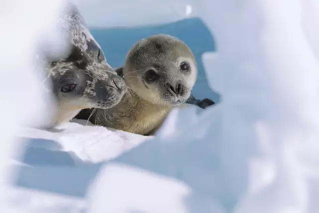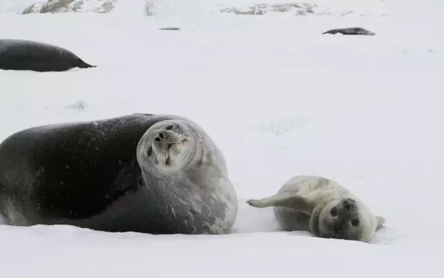 你們要的小海豹來了!這大眼睛,自帶美瞳效果。嗯,海豹媽媽在賣萌,小家伙在耍賴——這畫風(fēng),我給滿分!