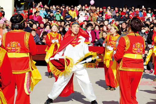 在剛剛過去的元宵節(jié),忻州城區(qū)紅旗廣場上豐富多彩的新春傳統(tǒng)文藝匯演給廣大市民留下了深刻的印象。圖為在威風(fēng)鑼鼓節(jié)目表演中,身著中式服裝的總指揮手拿令旗,嘴含口哨,手舞足蹈地發(fā)號施令,一招一式氣勢奪人,展現(xiàn)了忻州人民在雞年里擼起袖子加油干的精氣神。(魯明強(qiáng) 攝)