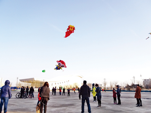 2月26日,恰逢周日,原平市范亭文體廣場上,市民們正在放風箏。隨著氣溫回暖,越來越多的家長帶領孩子選擇到戶外活動,沐浴陽光,感受春天。(褚震 攝)