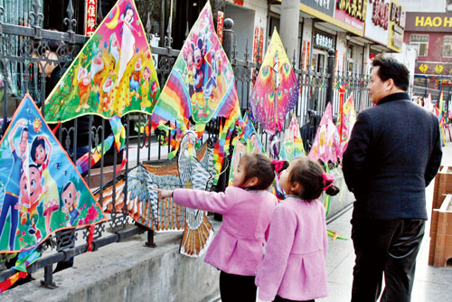 隨著天氣轉(zhuǎn)暖,市民戶外活動(dòng)增加,“兒童散學(xué)歸來早,忙趁東風(fēng)放紙鳶?!贝笕诵『⒐蚕泶旱臍庀ⅰD為3月11日,原平市民正在廣場(chǎng)上挑選五顏六色的風(fēng)箏,童話人物的風(fēng)箏備受孩子們喜愛。(趙春曉 攝)