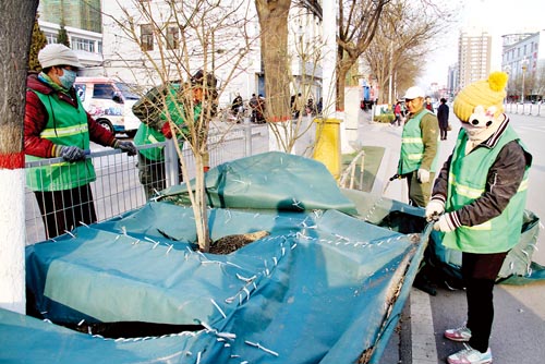 綠化帶脫“冬衣”