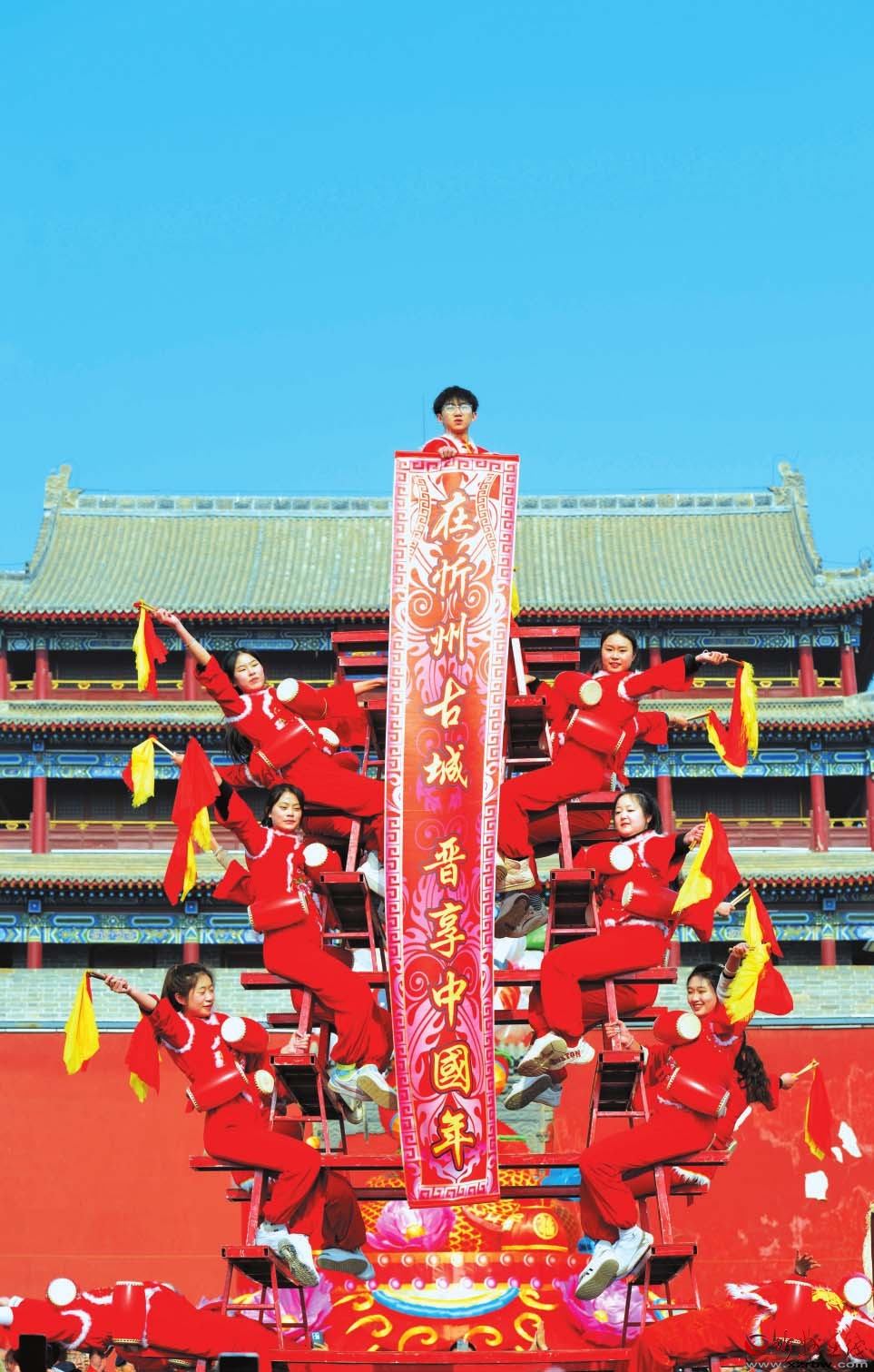 忻州古城“高臺花鼓”表演。 張宇飛 攝