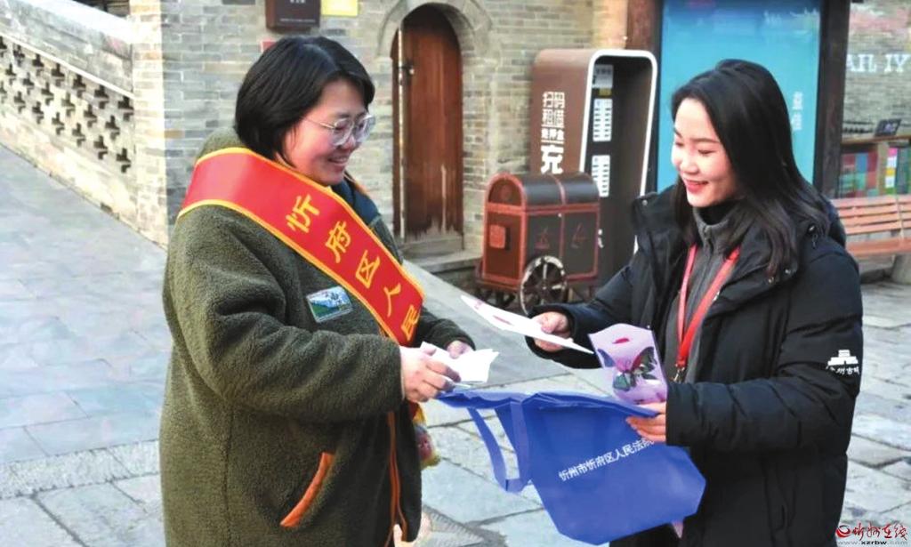 在秀容書院,法院干警通過懸掛橫幅、發(fā)放宣傳資料、現(xiàn)場答疑等形式,向來往游客普及《中華人民共和國婦女權(quán)益保障法》等相關(guān)法律法規(guī)。干警們深入淺出地講解其修訂要點(diǎn)與重大意義,展示忻府區(qū)歷史文化和文物資源,激發(fā)群眾對文物保護(hù)的積極性和參與度,引導(dǎo)和教育群眾主動(dòng)學(xué)法、自覺守法,切實(shí)維護(hù)自身合法權(quán)益。