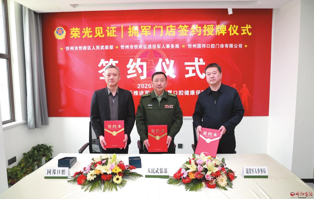 4月8日,忻府區(qū)人民武裝部、忻府區(qū)退役軍人事務(wù)局與國邦口腔共同簽署《社會化擁軍戰(zhàn)略合作協(xié)議》,共筑軍民融合新篇章。(記者 張存良攝)