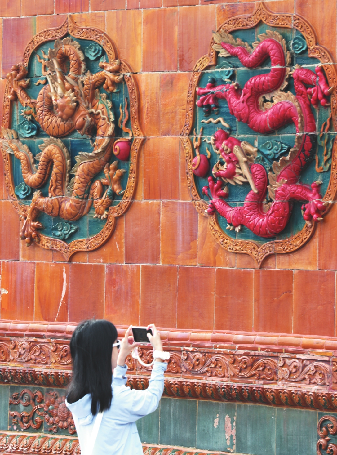流光溢彩的烏金山九龍壁。晉中日?qǐng)?bào)記者謝晉攝
