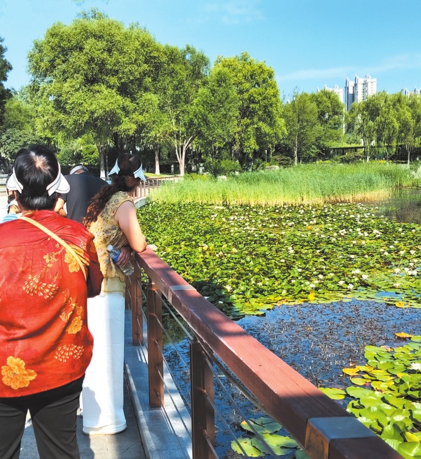暮色漫上來時,荷塘最是熱鬧。穿花裙的小娃娃踮腳摸蓮蓬,銀發(fā)的老夫妻坐在石凳上數(shù)花瓣,晚歸的人駐了步,手機鏡頭里全是荷的身影。風(fēng)推著荷浪輕搖,像在說:“別急,等你。”