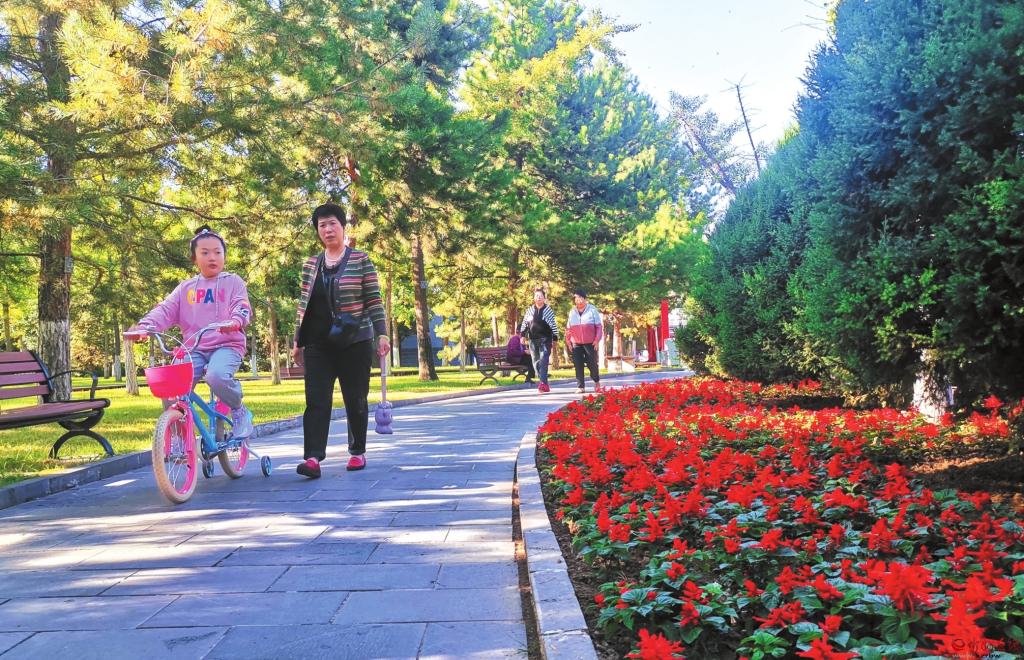 秋意漸濃,忻州市人民公園層林盡染,吸引眾多市民游客前來(lái)賞景。(