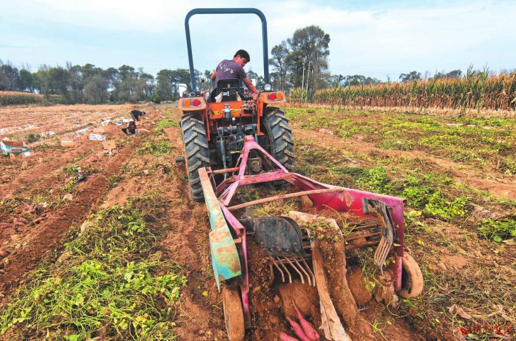 10月13日,忻府區(qū)北合索村村民在收獲紅薯。該村引進新品種,增施有機肥,加強科學管理,提高紅薯產(chǎn)量和品質(zhì),帶動農(nóng)民增收。 (記者 劉紀森攝)