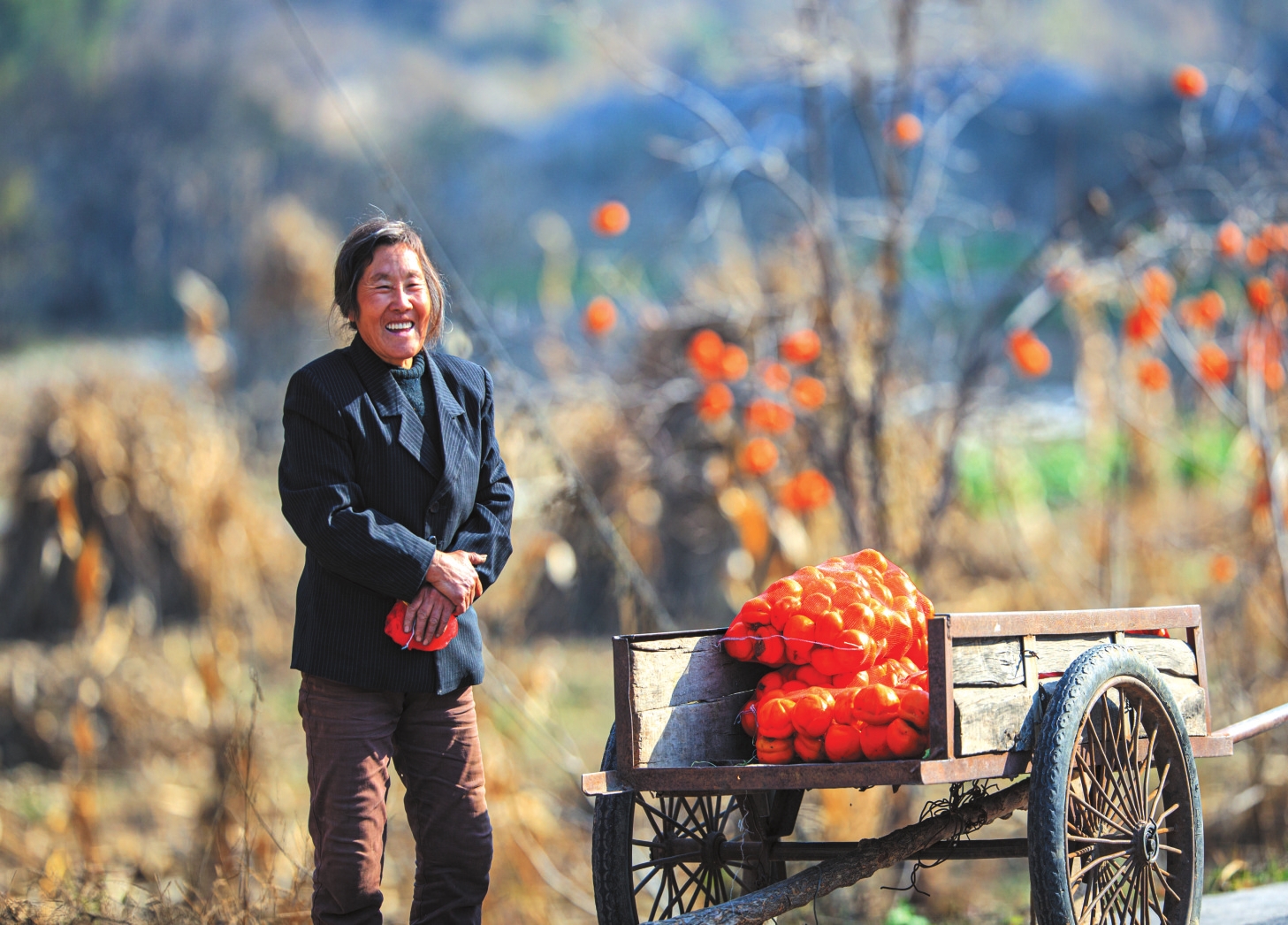 地頭那畔,景象便不同了。一對年輕的夫婦,正手腳利落地采摘、分揀柿子。竹籃里,橙紅的果實(shí)漸漸堆成小山。他們時(shí)而低語,聲音輕得像風(fēng)拂過枝梢,說的或許是今年柿子的成色,盤算著能賣個(gè)好價(jià)錢;或許是在憧憬,等這筆錢到手,該給娃添置些什么。他們額上有細(xì)密的汗珠,眉宇間有勞作后的倦色,但那份倦色底下,卻藏不住一股子蓬勃向上的勁兒,一種屬于明天的、清亮亮的盼頭。