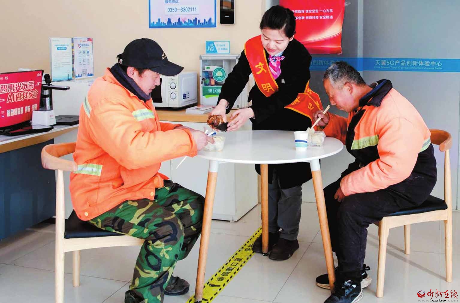 活動當天,忻州電信各網(wǎng)點“愛心翼站”成為溫馨的“暖心補給站”?!皭坌囊碚尽钡闹驹刚咭淮笤缇兔β灯饋?,精心準備了熱氣騰騰的餃子和香氣撲鼻的熱茶,他們走出營業(yè)廳,熱情地招呼環(huán)衛(wèi)工人:“師傅,今天是冬至,這么冷的天,您辛苦一大早啦,快到咱營業(yè)廳里吃些餃子暖和暖和……”環(huán)衛(wèi)工人們一邊吃著餃子,一邊連連感謝,為忻州電信的愛心服務豎起大拇指。