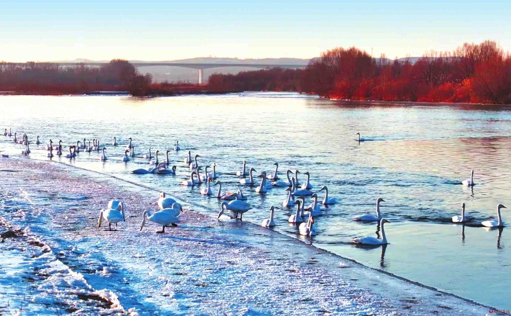 寒冬時節(jié),黃河河曲段迎來最動人的風景——湛藍的河面上,潔白的大天鵝如約而至,或翩躚起舞、或振翅嬉戲,為冬日的黃河增添了一抹生機與亮色。(