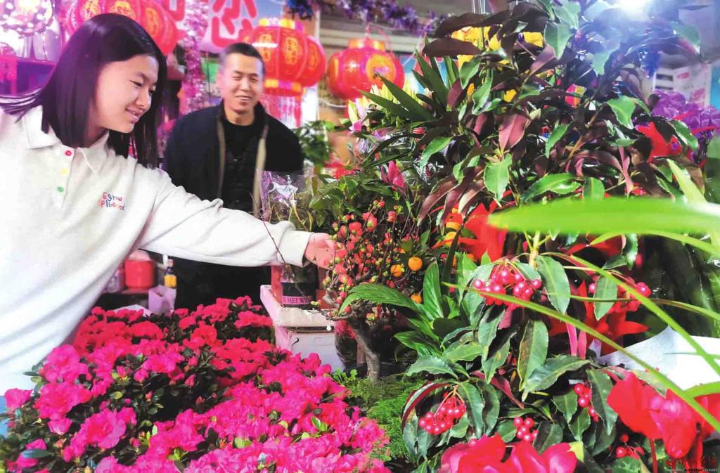 2月12日,市民在忻州城區(qū)長征后街花店選購鮮花,為即將到來的馬年春節(jié)營造喜慶熱鬧的氛圍。(