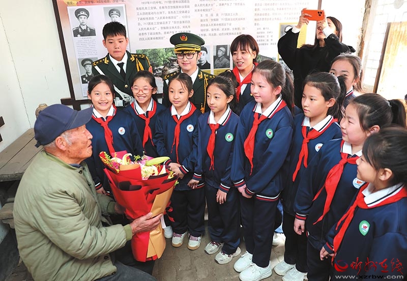 3月27日,忻州市七一路小學(xué)組織黨員、少先隊(duì)員走進(jìn)忻府區(qū)官莊村原忻縣(西)第一個紅色黨支部官莊黨支部舊址,開展“傳承紅色薪火,爭做新時代好隊(duì)員”主題活動,追憶崢嶸歲月,感悟革命精神。圖為老兵武三毛給孩子們講述抗戰(zhàn)故事。(記者 張存良攝)
