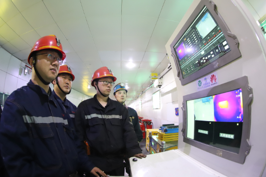 機電硐室燈光明亮,在一段120米的頭頂軌道上,一個小小的5G機器人正在來回移動,進行360度視頻監(jiān)測、音頻采集、紅外熱成像。“這是無人巡檢機器人,還能精準記錄設(shè)備故障發(fā)生的時間、地點以及參數(shù)。通過5G網(wǎng)絡(luò)回傳到數(shù)據(jù)中心?!毙略旱V5G智能化辦公室主任冀杰說,原來配電室都是靠人檢查,憑的是經(jīng)驗;但機器可以24小時巡查,不是人力可以比的?!把矙z機器人代替人在井下巡檢的意義在于,可以逐步實現(xiàn)井下減人、少人,實現(xiàn)煤礦安全生產(chǎn)和效益雙贏?!?/span>