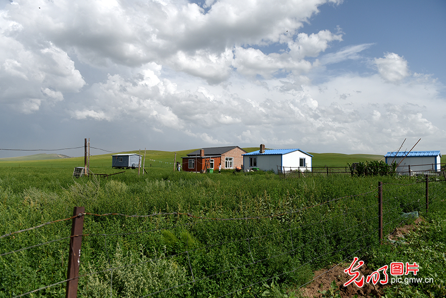 在其日麥拉圖家附近還有三所小房子,這是其日麥拉圖給自己的三個兒子準(zhǔn)備的。“兒子們都在旗里買了新房子、新車子,有時候也會帶著兒媳婦、孫子來牧場,和我們一起養(yǎng)牛、養(yǎng)馬?!眻D為2020年8月2日,其日麥拉圖家。(潘迪攝/光明圖片)