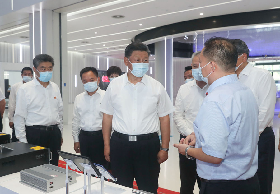 8月19日,習近平參觀安徽創(chuàng)新館,了解安徽省科技創(chuàng)新和新興產(chǎn)業(yè)發(fā)展情況。(新華社記者鞠鵬 攝)