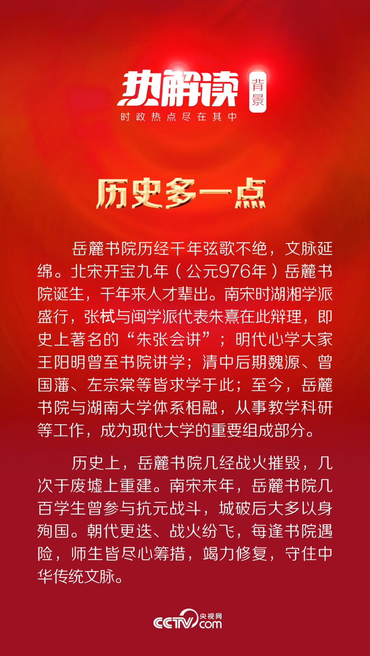 湖南大學(xué)岳麓書(shū)院外,習(xí)近平總書(shū)記深情祝福在場(chǎng)師生:“你們一定會(huì)不負(fù)時(shí)代的重托,繼續(xù)傳承湖湘之地這樣的一種精神,經(jīng)世致用,為中華民族偉大復(fù)興貢獻(xiàn)你們的所有才智。愿大家不負(fù)青春,不負(fù)韶華,形成成熟的人生觀、價(jià)值觀,走好人生的路,系好人生的第一顆紐扣?!爆F(xiàn)場(chǎng)掌聲經(jīng)久不息。
