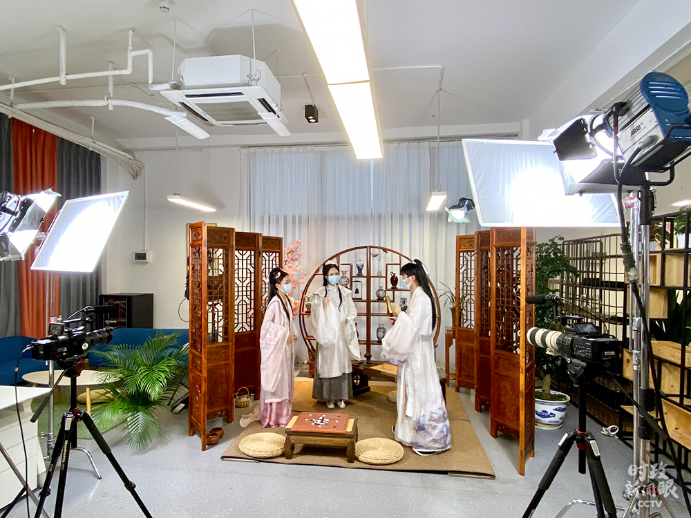 △馬欄山視頻文創(chuàng)園準備錄制漢服文化節(jié)目。(總臺央視記者郭曉龍拍攝)