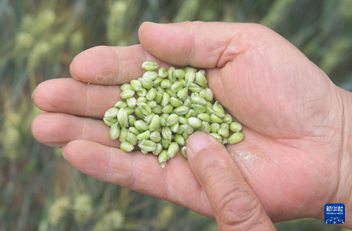 5月21日,農(nóng)戶在云南省麗江市玉龍納西族自治縣黃山街道的麥田里查看小麥長(zhǎng)勢(shì)。(新華社發(fā) 趙慶祖 攝)