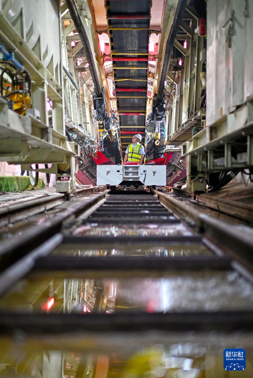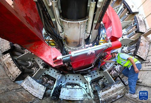 5月26日,施工人員在“青年先鋒號”盾構(gòu)機始發(fā)前檢查設(shè)備。(新華社記者 趙子碩 攝)