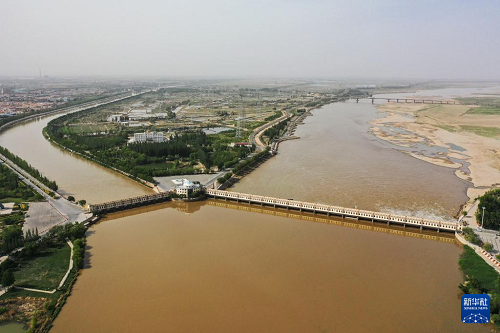 這是5月28日拍攝的位于巴彥淖爾市磴口縣的三盛公水利樞紐(無人機照片)。(新華社記者 李志鵬 攝)