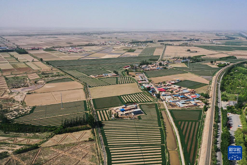 這是5月28日拍攝的巴彥淖爾市磴口縣境內的農田(無人機照片)。(新華社記者 李志鵬 攝)