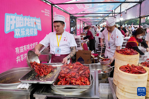 6月12日,廚師在活動(dòng)現(xiàn)場(chǎng)制作小龍蝦美食。(新華社記者 李博 攝)