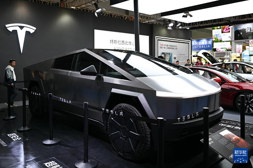 6月26日在2025(中國(guó))亞歐商品貿(mào)易博覽會(huì)上拍攝的特斯拉Cybertruck。(新華社記者 辛悅衛(wèi) 攝)