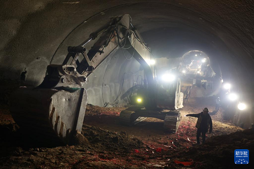 6月29日,工人在已經(jīng)貫通的西成鐵路西科隧道內(nèi)施工。(新華社記者 陳斌 攝)