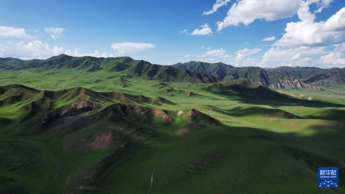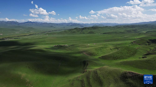 7月10日拍攝的桑科草原風(fēng)光(無人機(jī)照片)。(新華社記者 魚瀾 攝)