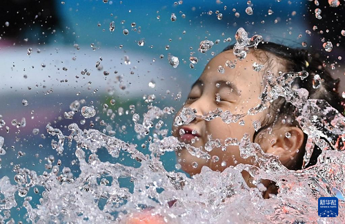 7月12日,小朋友在山東省棗莊市一家水上樂園戲水。(新華社發(fā) 李志軍 攝)