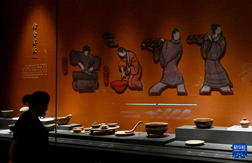 7月16日,參觀者在漢魏洛陽故城遺址博物館觀看展品陶百花燈。(新華社記者 郝源 攝)