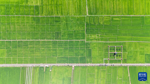 這是7月18日拍攝的吉林省和龍市光東村的連片稻田(無人機(jī)照片)。(新華社記者 邵澤東 攝)