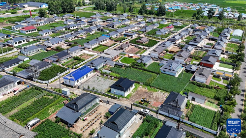 這是7月18日在吉林省和龍市光東村拍攝的特色民居群(無人機(jī)照片)。(新華社記者 邵澤東 攝)