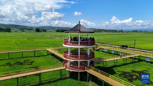 ??盛夏時(shí)節(jié),吉林延邊朝鮮族自治州和龍市光東村千畝稻田綠浪翻涌,宛然一幅田園畫卷,鋪展鄉(xiāng)村振興新圖景。低空纜車穿行稻海上空,觀光塔俯瞰田園風(fēng)光,小火車軌道盤旋稻浪間……該村創(chuàng)新“三產(chǎn)促二產(chǎn)帶一產(chǎn)”發(fā)展路徑,通過整合閑置宅基地資源、壯大綠色有機(jī)水稻產(chǎn)業(yè)、打造農(nóng)旅融合鏈條,實(shí)現(xiàn)生態(tài)與經(jīng)濟(jì)效益雙提升。2024年,全村接待游客突破20萬人次,帶動(dòng)集體收入超百萬元,生動(dòng)踐行“綠水青山就是金山銀山”理念。特色民宿與共享庭院相映成輝,廁所革命夯實(shí)基礎(chǔ)設(shè)施,昔日的邊境村落已蝶變?yōu)槿珖l(xiāng)村旅游重點(diǎn)村。