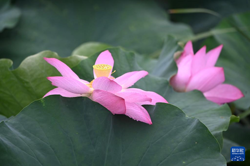 7月22日,北京北海公園內(nèi)荷花盛開。(新華社發(fā) 戴明軒 攝)