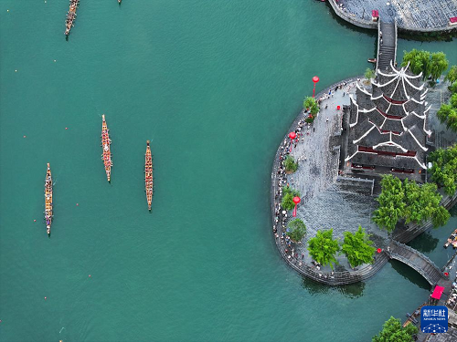 這是7月22日拍攝的2025年民體杯全國(guó)龍舟比賽(無(wú)人機(jī)照片)。(新華社記者 楊文斌 攝)