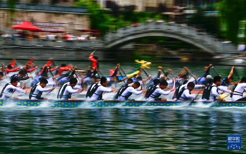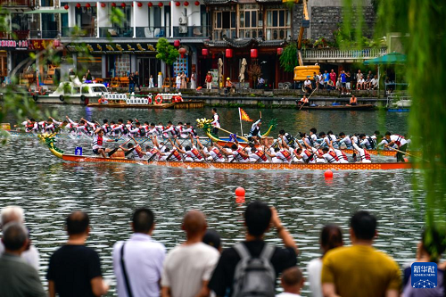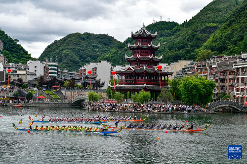 7月22日,2025年民體杯全國(guó)龍舟比賽在貴州省黔東南苗族侗族自治州鎮(zhèn)遠(yuǎn)古城開幕。來(lái)自全國(guó)各地的10支龍舟隊(duì)伍同場(chǎng)競(jìng)技,在鎮(zhèn)遠(yuǎn)古城的?陽(yáng)河上參加為期兩天的水上競(jìng)速。賽事期間同時(shí)舉辦非遺展演、“龍神嫁妹”主題巡演等豐富多彩的活動(dòng)。
