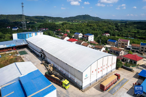 這是7月24日在常德市鼎城區(qū)雙橋坪鎮(zhèn)拍攝的一個水稻烘干工廠(無人機照片)。(新華社記者 周勉 攝)