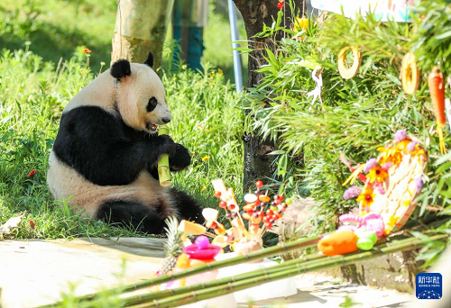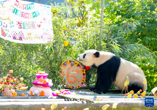7月27日,大熊貓“林溪”“一家”在四川省廣安市華鎣山熊貓?jiān)?,分別迎來4歲和6歲生日,飼養(yǎng)員為它倆舉行了一場別開生面的生日會。