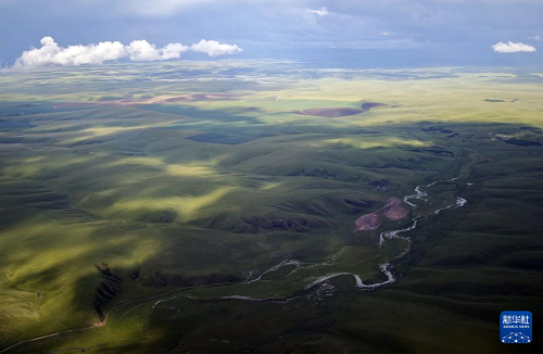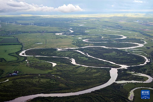 內蒙古呼倫貝爾草原上的河流(7月29日攝,手機照片)。(新華社記者 賈立君 攝)